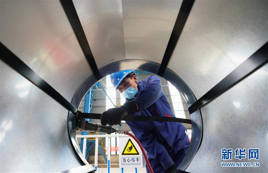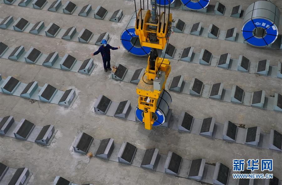 5月22日,工人在遷安市首鋼遷鋼高端汽車板生產(chǎn)車間成品區(qū)工作。近日,首鋼股份公司遷安鋼鐵公司高端汽車板生產(chǎn)線項(xiàng)目在河北省遷安市投產(chǎn)。該項(xiàng)目具有技術(shù)水平領(lǐng)先、操作智能、節(jié)能環(huán)保等優(yōu)勢,酸洗板材年產(chǎn)量達(dá)100萬噸,產(chǎn)品主要應(yīng)用于高端汽車零部件生產(chǎn)及空調(diào)壓縮機(jī)用鋼和高強(qiáng)系列用鋼、精沖用鋼等多個領(lǐng)域。新華社記者 楊世堯 攝