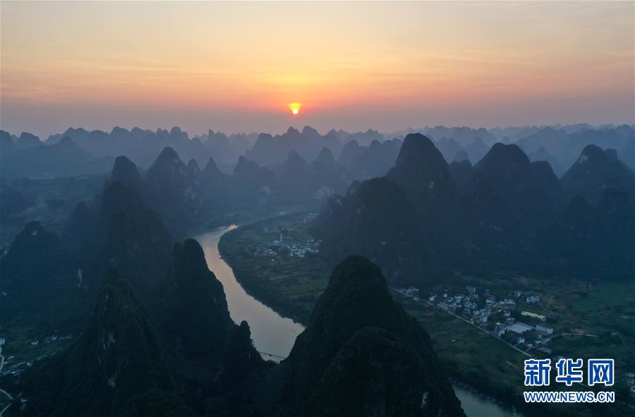 這是在廣西桂林市陽(yáng)朔縣興坪鎮(zhèn)拍攝的風(fēng)光(5月19日攝,無(wú)人機(jī)照片)?!吧n蒼森八桂,茲地在湘南。江作青羅帶,山如碧玉篸……”一千多年前,唐朝詩(shī)人韓愈寫(xiě)盡桂林山水之美。初夏時(shí)節(jié),在廣西桂林市陽(yáng)朔縣興坪鎮(zhèn),藍(lán)天白云下,煙雨朦朧中,桂林山水盡顯秀美。新華社記者 周華 攝