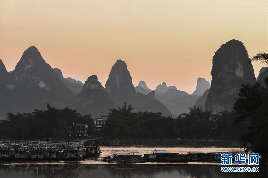 這是在廣西桂林市陽(yáng)朔縣興坪鎮(zhèn)拍攝的山水風(fēng)光(5月19日攝)?!吧n蒼森八桂,茲地在湘南。江作青羅帶,山如碧玉篸……”一千多年前,唐朝詩(shī)人韓愈寫(xiě)盡桂林山水之美。初夏時(shí)節(jié),在廣西桂林市陽(yáng)朔縣興坪鎮(zhèn),藍(lán)天白云下,煙雨朦朧中,桂林山水盡顯秀美。新華社記者 曹祎銘 攝