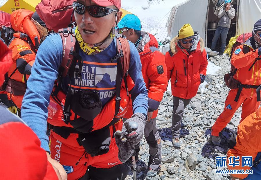 5月24日,2020珠峰高程測量登山隊部分人員準(zhǔn)備從海拔6500米的前進(jìn)營地出發(fā)。新華社特約記者拉巴攝