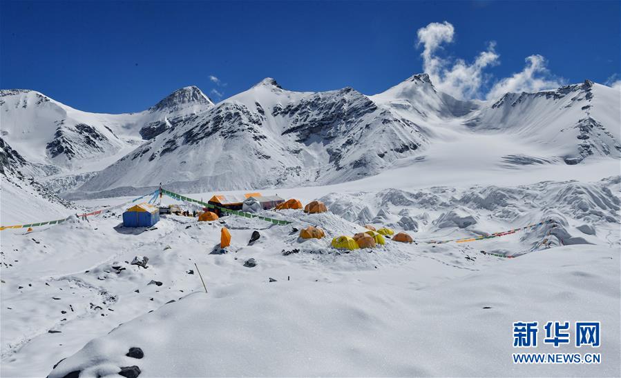 于珠峰東絨布冰川旁海拔6500米的珠峰前進(jìn)營地(5月22日攝,手機(jī)照片)。新華社記者晉美多吉攝