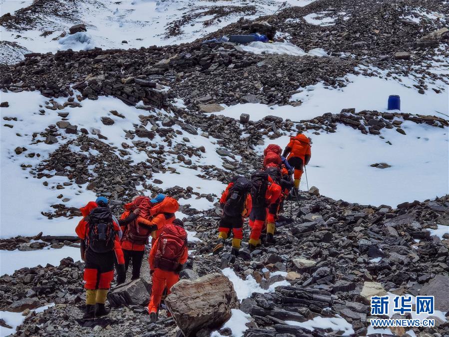 5月24日,2020珠峰高程測量登山隊部分人員從海拔6500米的前進(jìn)營地出發(fā)。