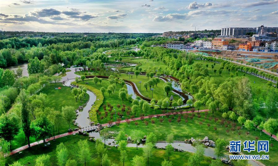 5月24日拍攝的榆林市榆溪河生態(tài)長廊(無人機照片)。新華社記者陶明攝