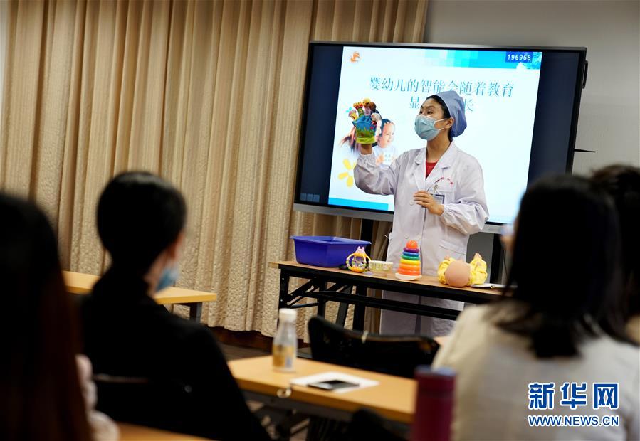 5月26日,中國(guó)福利會(huì)國(guó)際和平婦幼保健院健康教育科孕婦學(xué)校的醫(yī)生在上課。新華社記者 劉穎 攝