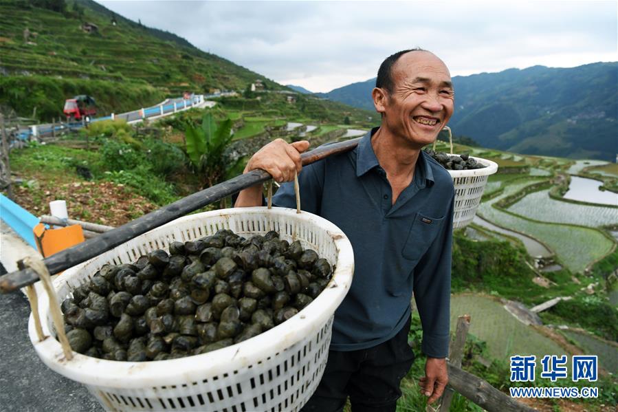 5月26日,貴州省從江縣加榜鄉(xiāng)加車村的村民在搬運種螺。