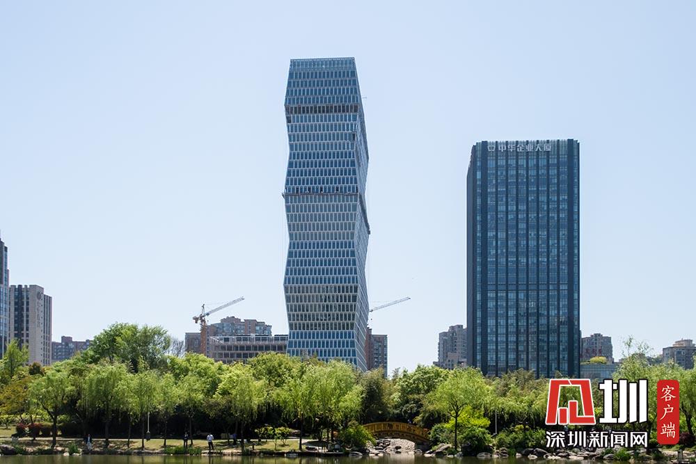 2018年4月10日,上海,長寧區(qū)古北商務(wù)區(qū)一新建超高層建筑造型頗為獨(dú)特,起伏收分層疊向上的體量和節(jié)節(jié)高的竹子頗為神似。從各個(gè)角度看,大樓的外邊都呈折線,有附近居民戲稱這幢大樓為“扭腰大樓”。