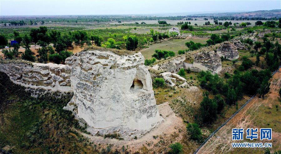 統(tǒng)萬城保留最完整的一段城墻遺址(5月30日攝,無人機(jī)照片)。