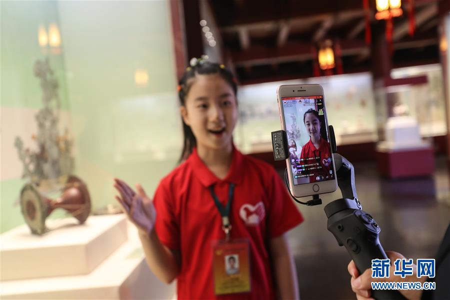6月1日,小志愿者于冰清在沈陽故宮博物館內(nèi)通過直播向觀眾講解“古趣童心——清宮文物中的兒童世界”展覽。當日是“六一”國際兒童節(jié),沈陽故宮博物館的小志愿者利用網(wǎng)絡直播的形式,帶領小朋友“云”逛沈陽故宮博物館,并向小朋友們詳細講解正在館內(nèi)展出的“古趣童心——清宮文物中的兒童世界”展覽。新華社記者潘昱龍攝。
