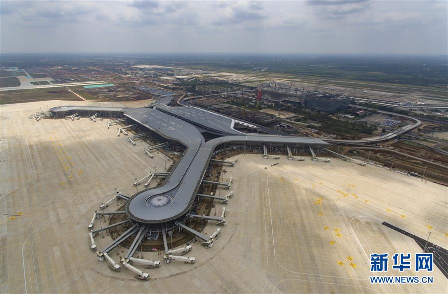 這是4月11日拍攝的建設(shè)中的??诿捞m國際機(jī)場(chǎng)二期項(xiàng)目航站樓(無人機(jī)照片)。新華社記者郭程攝