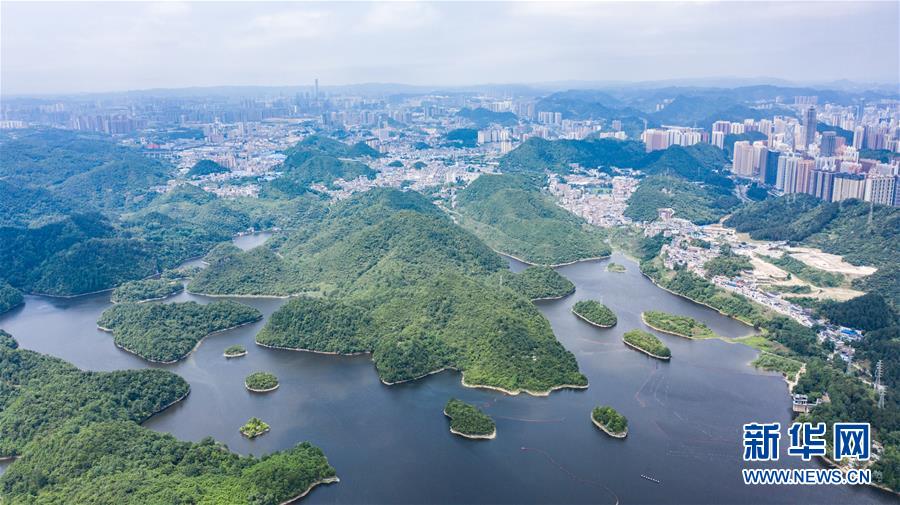 6月2日拍攝的貴陽市阿哈湖國(guó)家濕地公園(無人機(jī)照片)。初夏時(shí)節(jié),貴州省貴陽市阿哈湖國(guó)家濕地公園草木蒼翠,風(fēng)景如畫,吸引人們前來休閑游玩。新華社記者陶亮攝。