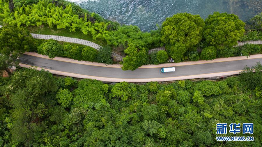 6月2日,車輛在阿哈湖國家濕地公園內(nèi)行駛(無人機照片)。初夏時節(jié),貴州省貴陽市阿哈湖國家濕地公園草木蒼翠,風(fēng)景如畫,吸引人們前來休閑游玩。新華社記者陶亮攝。