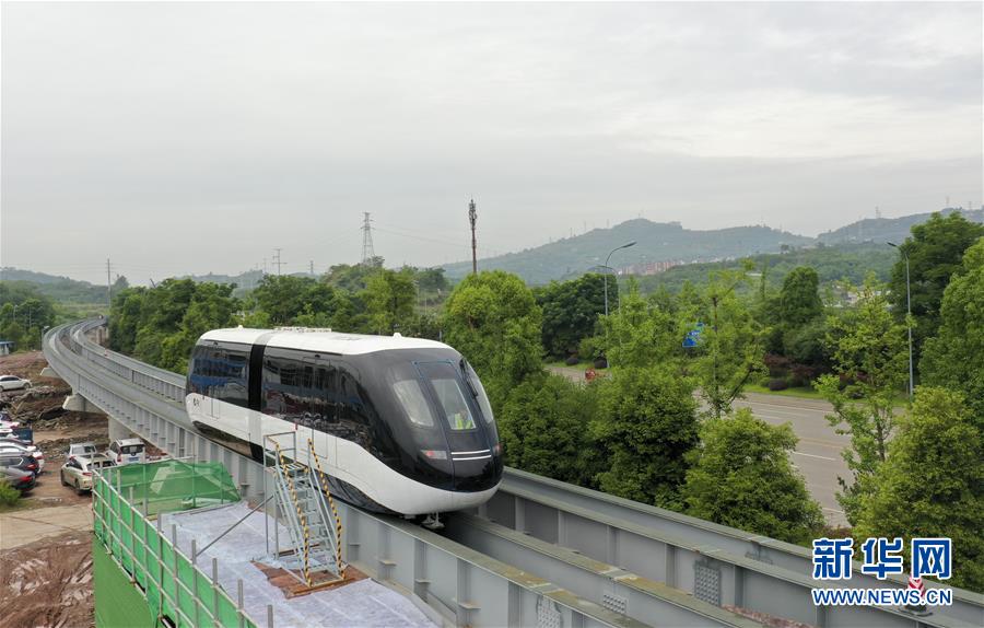 6月3日,一臺“云巴”在專用運(yùn)行軌道上進(jìn)行調(diào)試(無人機(jī)照片)。近日,重慶市首條“云巴”示范線項目在重慶璧山區(qū)正式亮相。此次發(fā)布的“云巴”采用電能驅(qū)動,具有轉(zhuǎn)彎半徑小、爬坡能力強(qiáng)、噪音低、安全性高、建設(shè)成本低、建造周期短等優(yōu)勢,能為乘客提供更智能、舒適、便捷的出行體驗。據(jù)介紹,璧山區(qū)“云巴”示范線項目自2019年8月開建,線路正線全長15.4km,共設(shè)車站15座,預(yù)計2020年9月全線通車。新華社記者劉潺攝。