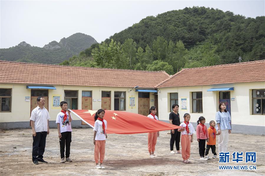 6月2日,開學(xué)第一天,馬武寨寄宿制小學(xué)舉行了升旗儀式。新華社記者楊晨光攝。