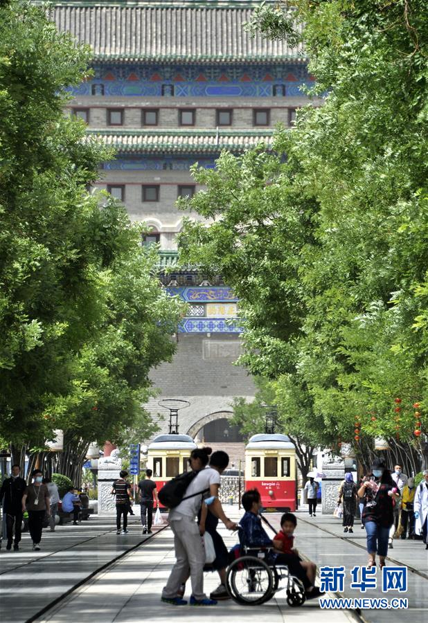 6月3日,市民及游客在前門(mén)步行街觀光。近日,游人和市民紛紛來(lái)到北京市的王府井、西單、前門(mén)大街等著名商業(yè)街購(gòu)物休閑,這些老商業(yè)街開(kāi)始逐步恢復(fù)昔日的繁華。新華社記者李欣攝。