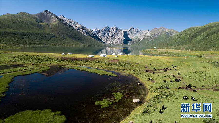 2019年7月9日拍攝的位于三江源地區(qū)的青海省果洛藏族自治州久治縣境內的年保玉則風光(無人機照片)。6月2日,青海省生態(tài)環(huán)境廳發(fā)布《2019年青海省生態(tài)環(huán)境狀況公報》稱,青海省三江源地區(qū)境內的長江、黃河、瀾滄江干流流域水質優(yōu)良,植被覆蓋度呈增長趨勢,全省生態(tài)環(huán)境狀況總體保持穩(wěn)定。新華社記者吳剛攝。