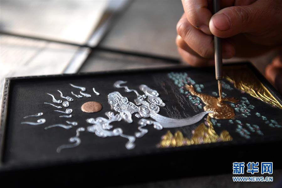 5月20日,安徽歙縣“項氏徽墨”的工人為晾干的墨進(jìn)行描金。新華社記者劉軍喜攝。