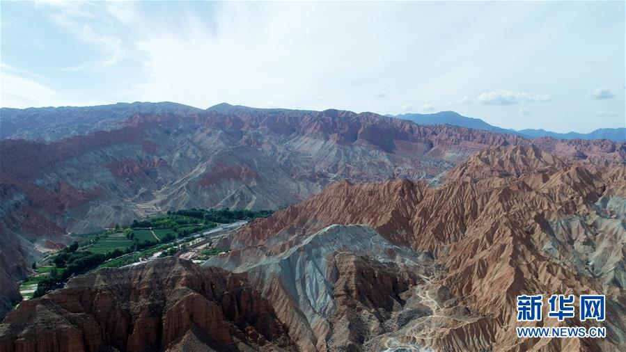 這是6月5日拍攝的位于青海省海南藏族自治州貴德縣境內(nèi)的丹霞地貌(無(wú)人機(jī)照片)。在青海省海南藏族自治州貴德縣境內(nèi),色彩斑斕的丹霞地貌美如畫(huà)卷。新華社記者趙玉和攝。