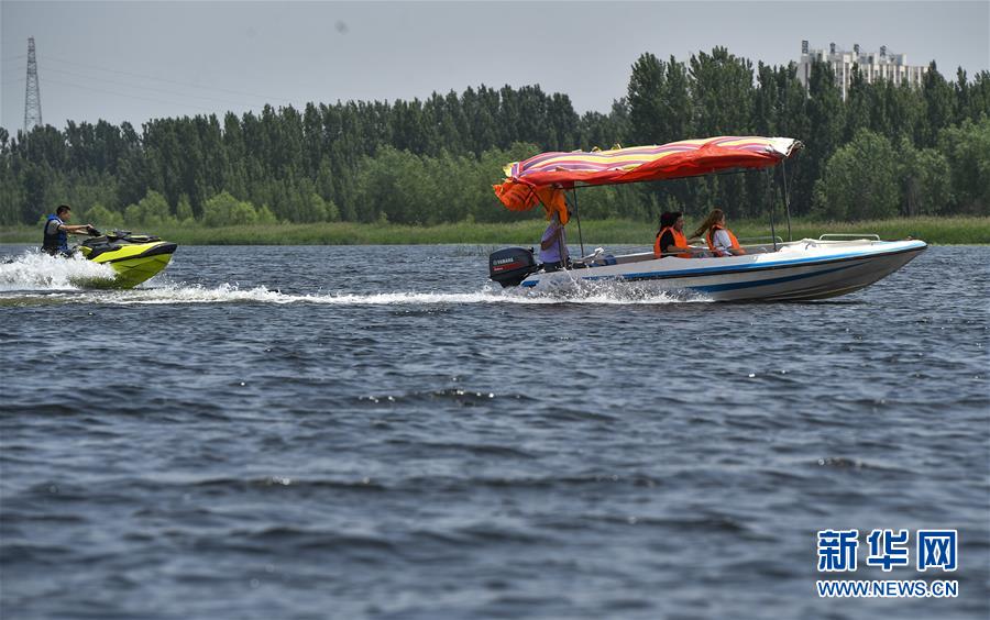 6月5日,游客在文安縣趙王新河濕地公園游覽。近年來(lái),河北省文安縣將植樹(shù)造林與城市建設(shè)有機(jī)融合,探索“政府引導(dǎo)、企業(yè)運(yùn)作、多方共贏”的市場(chǎng)化植樹(shù)造林新模式,大規(guī)模推進(jìn)國(guó)土綠化,打造人與自然和諧共生的優(yōu)美生態(tài)環(huán)境,構(gòu)筑京津雄綠色屏障。截至目前,該縣森林覆蓋率已經(jīng)達(dá)到33%,城區(qū)綠地面積達(dá)到36.48%。新華社記者李曉果攝。
