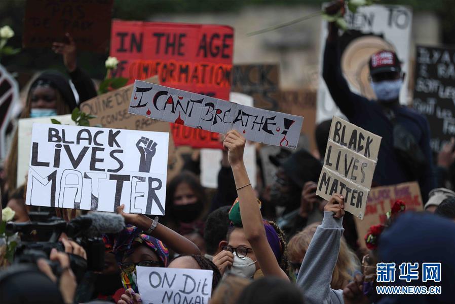 6月7日,民眾在比利時(shí)布魯塞爾市中心的司法宮附近參加示威活動。比利時(shí)民眾當(dāng)日在布魯塞爾市中心的司法宮附近舉行示威活動,抗議美國明尼阿波利斯市警察暴力執(zhí)法致非裔男子喬治·弗洛伊德死亡。新華社記者鄭煥松攝