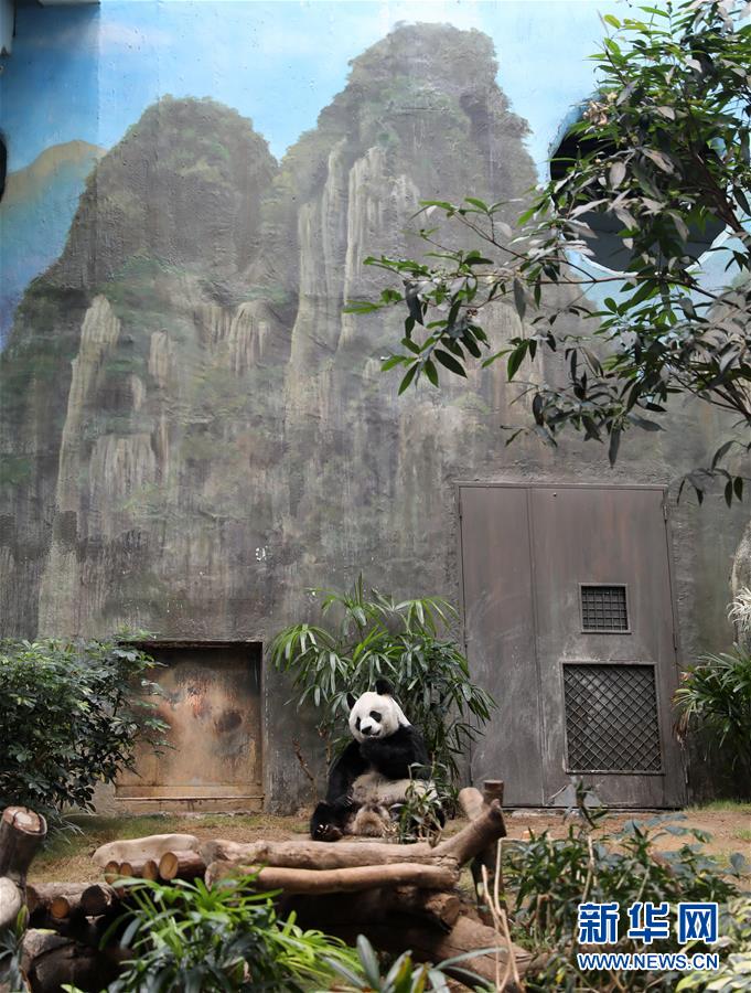 大熊貓“安安”在香港海洋公園展區(qū)(5月11日攝)。新華社記者吳曉初攝