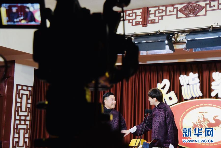 6月6日晚,天津名流茶館的相聲演員在付費(fèi)直播《名流名家“逗你玩”》演出中說相聲。隨著疫情防控形勢逐漸向好,天津的一些茶館紛紛轉(zhuǎn)戰(zhàn)“云端”說相聲,推出付費(fèi)直播演出,并邀請一些幸運(yùn)觀眾到現(xiàn)場觀看,在傳播津味相聲、培養(yǎng)年輕觀眾的同時,也為即將到來的線下演出“預(yù)熱”。新華社記者周潤健攝