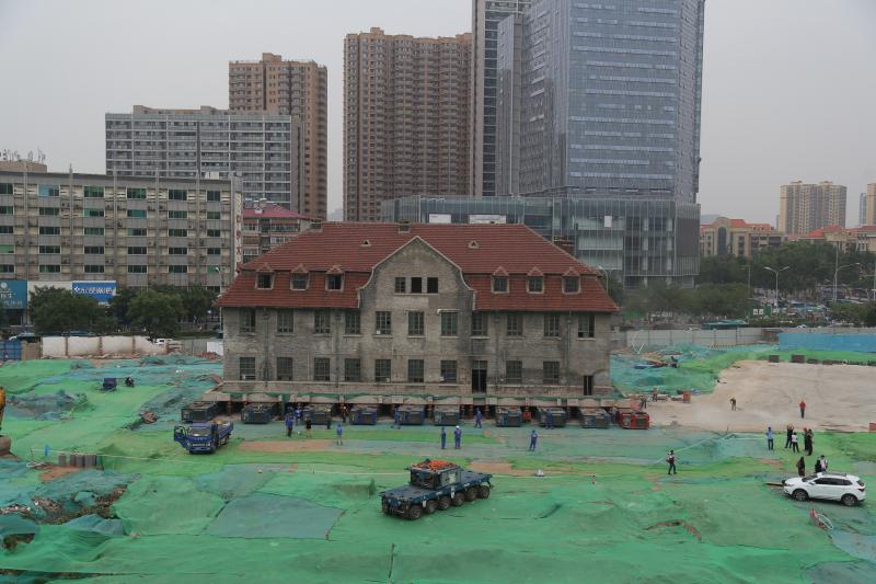 山東濟(jì)南2600噸百年修女樓坐“車”準(zhǔn)備平移