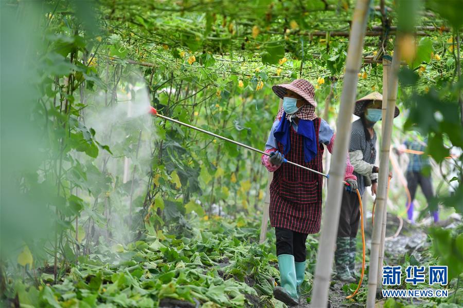 6月9日,在江華瑤族自治縣濤圩鎮(zhèn)鳳尾村蔬菜基地,農(nóng)戶對農(nóng)作物進行噴灑消毒。近日,受連續(xù)強降雨影響,湖南省永州市江華瑤族自治縣遭遇洪澇災害,部分農(nóng)田受災。目前,江華瑤族自治縣洪水已退,群眾在當?shù)叵嚓P部門引導下積極開展生產(chǎn)自救。新華社記者陳澤國攝