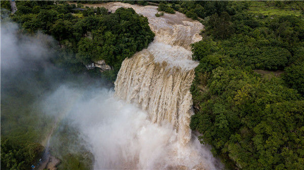 2019年6月12日,貴州省安順市黃果樹瀑布景區(qū)。(無人機航拍)