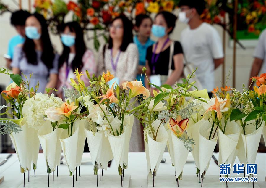 這是開幕式現(xiàn)場(chǎng)展示的大學(xué)生設(shè)計(jì)創(chuàng)作的萱草花小花束(6月13日攝)。6月13日,“2020中國(guó)(上海)萱草文化節(jié)”在上海應(yīng)用技術(shù)大學(xué)開幕,校園里數(shù)百個(gè)品種的萱草花競(jìng)相綻放,萱草科研推廣、萱草文化交流等多項(xiàng)活動(dòng)同時(shí)舉行。新華社記者 劉穎 攝