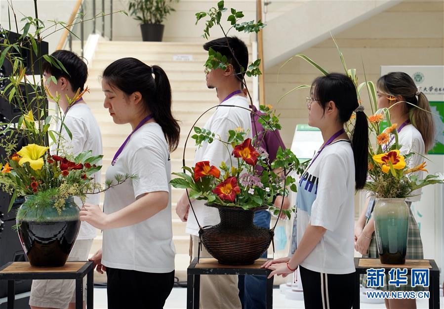 6月13日,上海應(yīng)用技術(shù)大學(xué)的學(xué)生們?cè)O(shè)計(jì)創(chuàng)作的萱草花藝作品即將在開幕式現(xiàn)場(chǎng)亮相。當(dāng)日,“2020中國(guó)(上海)萱草文化節(jié)”在上海應(yīng)用技術(shù)大學(xué)開幕,校園里數(shù)百個(gè)品種的萱草花競(jìng)相綻放,萱草科研推廣、萱草文化交流等多項(xiàng)活動(dòng)同時(shí)舉行。新華社記者 劉穎 攝