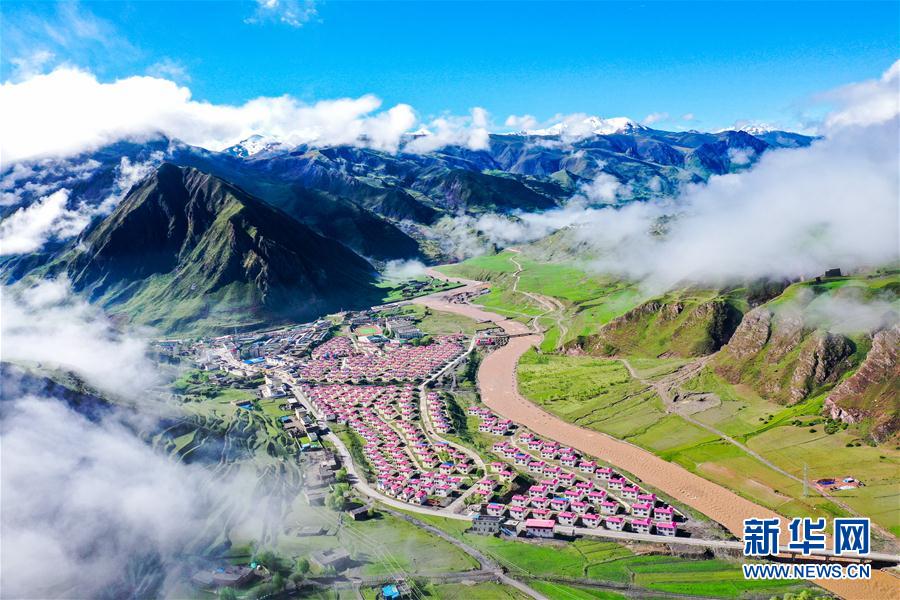 位于丁青縣嘎曲河畔的尺牘鎮(zhèn)易地扶貧搬遷點(6月14日攝,無人機照片)。新華社記者 田金文 攝