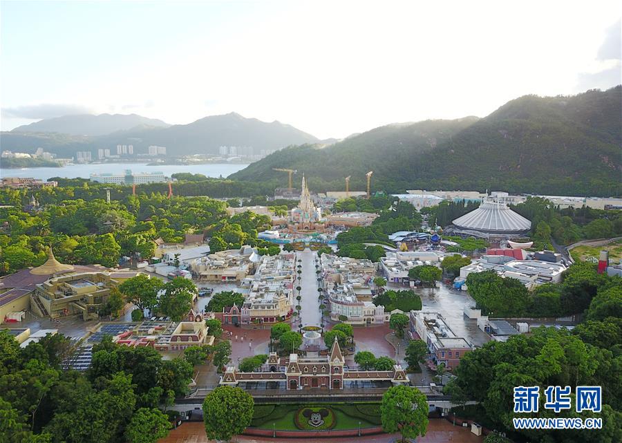 6月17日拍攝的香港迪士尼樂園(無人機(jī)照片)。香港迪士尼樂園度假區(qū)將于6月18日重新開放,并將實(shí)施一系列措施保障游客的健康及安全。新華社記者 李鋼 攝