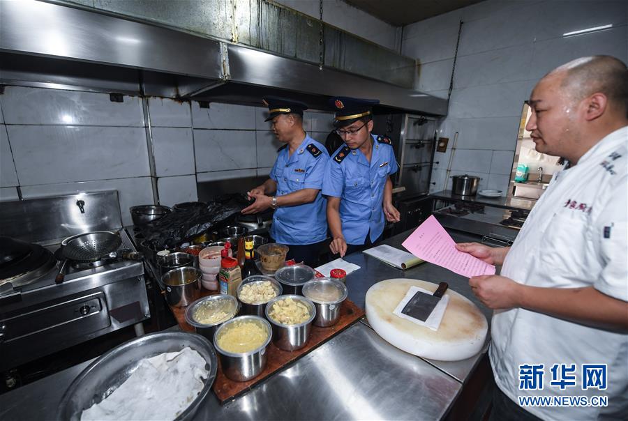 6月17日,市場監(jiān)管執(zhí)法人員在東林鎮(zhèn)一家農(nóng)家樂內(nèi)開展專項執(zhí)法行動,檢查是否存在非法經(jīng)營和加工野生動物的情況。新華社記者 徐昱 攝