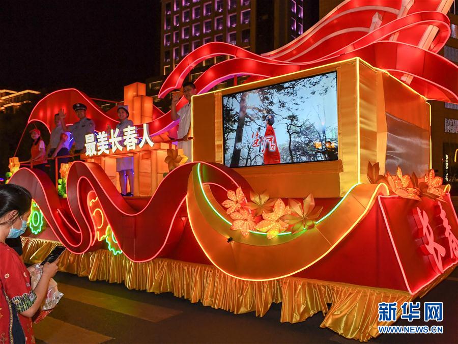 6月19日,花車在長(zhǎng)春市人民大街上巡游。新華社記者張楠攝