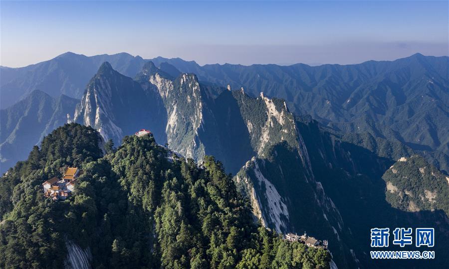 6月18日拍攝的華山南峰(無(wú)人機(jī)照片)。當(dāng)日,西岳華山經(jīng)歷連續(xù)三天暴雨后,迎來(lái)燦爛的陽(yáng)光。新華社記者 陶明 攝