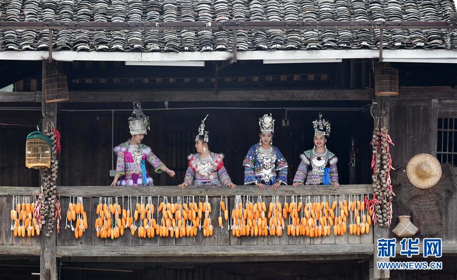 在廣西融水雙龍溝森林旅游度假區(qū)夢(mèng)嗚苗寨,游客身著苗族服飾拍照(2019年11月24日攝)。近年來(lái),融水打造原生態(tài)苗族文化體驗(yàn)園——夢(mèng)嗚苗寨,讓搬遷進(jìn)城的貧困戶住進(jìn)復(fù)原建設(shè)的老房子。景區(qū)提供綠化保潔、游樂設(shè)施管理、民族歌舞表演等工作崗位,多渠道增加貧困戶收入。新華社記者黃孝邦攝