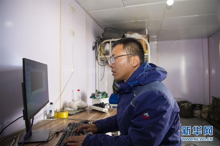 在中國科學院新疆天文臺慕士塔格觀測站,馮國杰打開軟件,調試設備(6月15日攝)。新華社記者胡虎虎攝