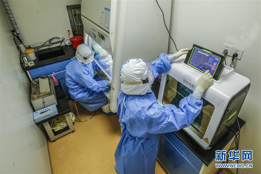 6月23日,檢驗人員操作全自動核酸提取儀。6月15日,北京市普仁醫(yī)院PCR實驗室正式啟用,并立即投入到新冠肺炎病毒核酸檢測工作之中,為新冠肺炎疫情防控增添利器。普仁醫(yī)院PCR實驗室啟用以來,除了來自本院發(fā)熱門診、門急診、病房和核酸檢測采樣點的樣本之外,還承接了社區(qū)以及東城區(qū)集中核酸檢測點采集的部分樣本。新華社記者張玉薇攝