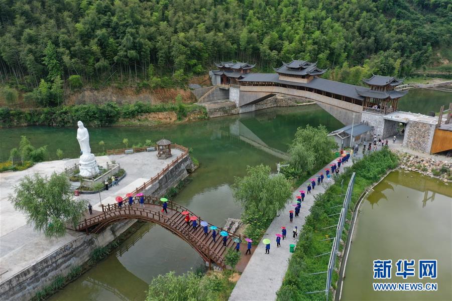 6月24日,福建政和縣外屯鄉(xiāng)群眾在湖屯村舉行走橋活動(無人機照片)。當日,福建省政和縣舉行第三屆中國·屯福橋端午民俗文化節(jié)。端午節(jié)臨近,各地舉行包粽子、做香包、賽龍舟等豐富多彩的民俗文化活動,迎接傳統(tǒng)佳節(jié)的到來。新華社記者林善傳攝
