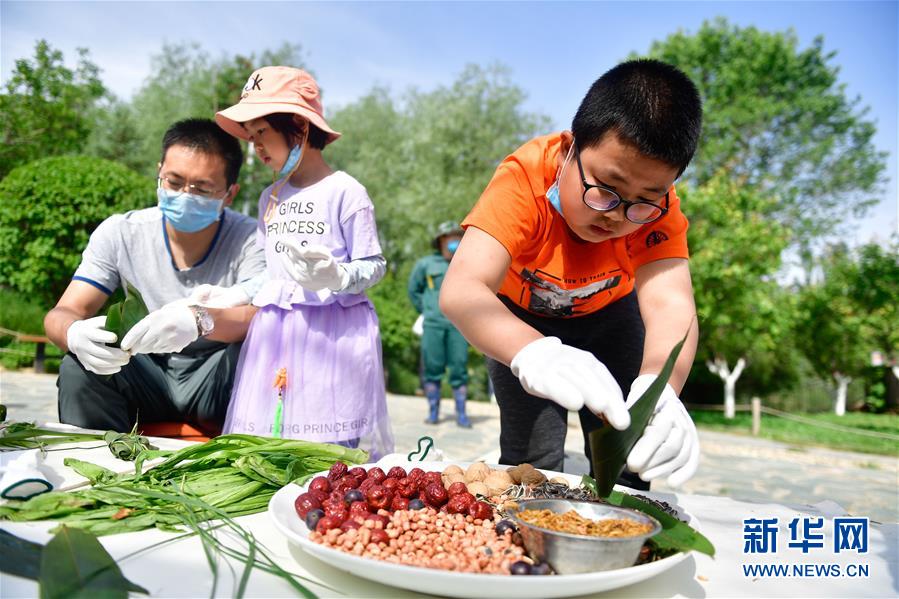 6月25日,在青海省西寧野生動物園,一位小朋友在給粽子裝餡料。當日是端午節(jié),青海省西寧野生動物園組織小朋友們?yōu)閯游飯@內(nèi)的靈長類動物包粽子,讓動物們也享用端午節(jié)傳統(tǒng)“美味”。新華社記者 張龍 攝