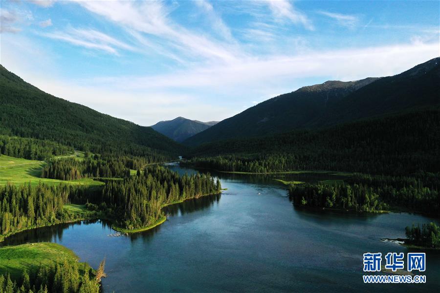 這是6月24日拍攝的新疆喀納斯景區(qū)風(fēng)光(無人機(jī)照片)。新華社記者 沙達(dá)提 攝