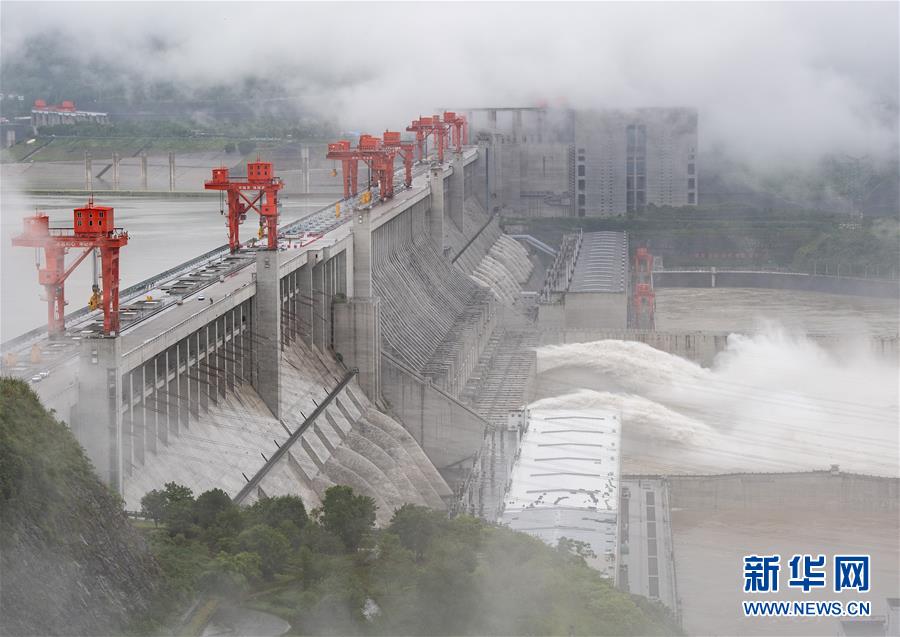 6月29日,三峽樞紐開啟泄洪孔泄洪。受長江中上游強降雨影響,進入三峽水庫的水量持續(xù)增多。為騰出一定庫容迎接近期可能到來的洪水,三峽樞紐于6月29日上午開啟兩個泄洪孔,加大下泄流量。這是三峽樞紐今年首次泄洪。28日14時,三峽水庫入庫流量達4萬立方米/秒,是27日14時的兩倍。為應(yīng)對此輪來水,長江防總要求將三峽水庫下泄流量上調(diào)至日均3.5萬立方米/秒。新華社發(fā)(鄭家裕攝)
