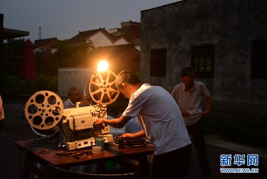 6月30日,朱強在當晚電影開播前調試放映機鏡頭焦距。新華社記者鄭夢雨攝