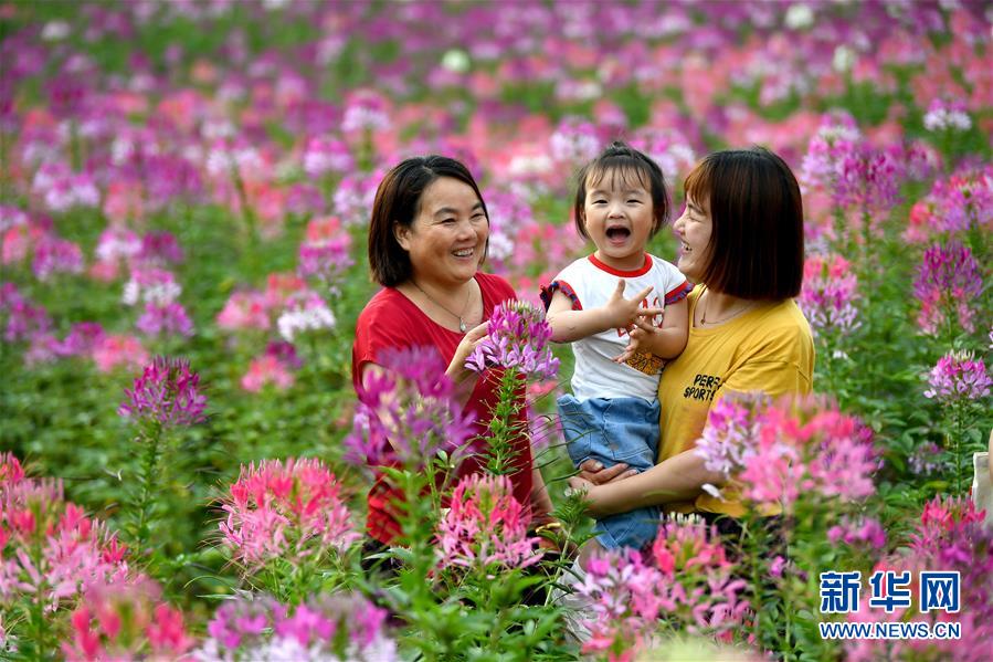 7月1日,市民在位于留壩縣城的金水灣花海游玩。近日,陜西省漢中市留壩縣金水灣花海的各類鮮花次第綻放,絢麗繽紛。新華社記者劉瀟攝