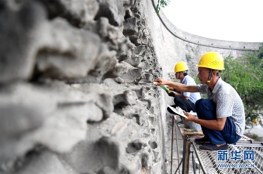7月2日,工作人員在永年廣府古城修繕城墻。經(jīng)國(guó)家文物局和河北省文物局批準(zhǔn),河北永年廣府古城修繕工程已全面啟動(dòng)。在文物專家全程參與下,按照“不改變文物原狀”原則進(jìn)行修繕,預(yù)計(jì)2021年4月底完工。永年廣府古城擁有華北地區(qū)保存最完整的古城墻,現(xiàn)為全國(guó)重點(diǎn)文物保護(hù)單位。新華社記者王曉攝