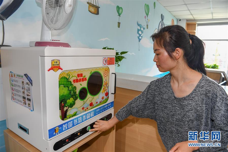 7月2日,在長春市少年兒童圖書館平陽社區(qū)繪本主題分館,管理員金敏為圖書進(jìn)行消殺。長春市少年兒童圖書館平陽社區(qū)繪本主題分館位于南關(guān)區(qū)曙光街道平陽社區(qū),目前藏書約5000冊。該館于6月30日揭牌開館,由長春市少年兒童圖書館和南關(guān)區(qū)曙光街道辦事處共同打造,是長春首個(gè)繪本主題圖書分館。可為周邊居民和兒童提供圖書借閱、數(shù)字閱讀體驗(yàn)、親子活動、少兒公益活動等服務(wù)。新華社記者張楠攝