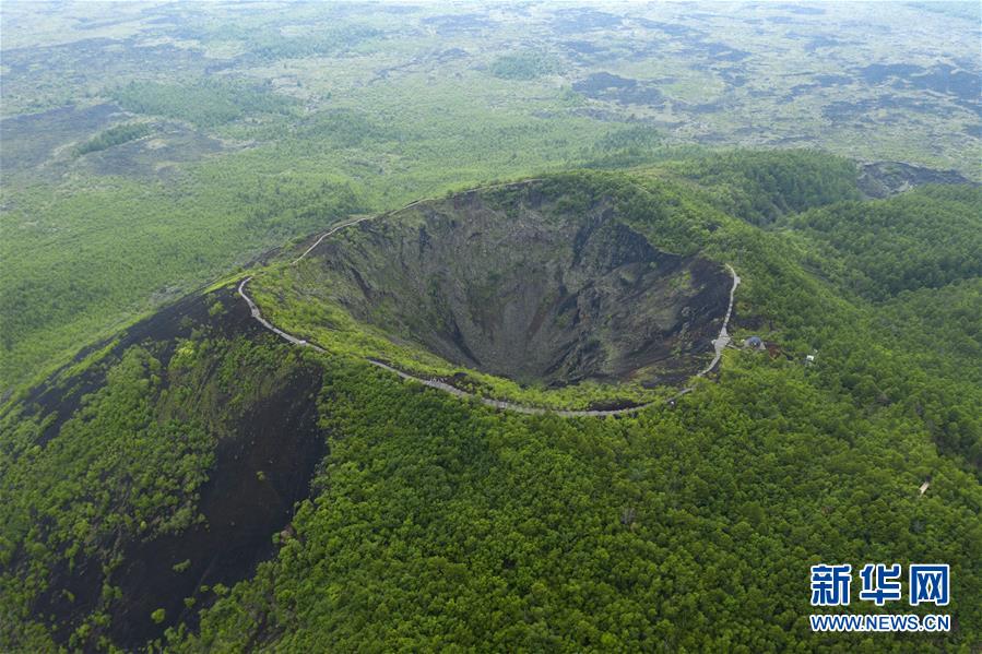 這是7月3日拍攝的五大連池風(fēng)景區(qū)(無(wú)人機(jī)照片)。 時(shí)下,五大連池風(fēng)景區(qū)內(nèi)植被蔥蘢,在火山、熔巖臺(tái)地、火山堰塞湖的映襯下,景色壯美。 五大連池風(fēng)景區(qū)位于黑龍江省黑河市,是較為典型和完整的近代火山噴發(fā)遺跡,被喻為“天然的火山博物館”。 新華社記者 謝劍飛 攝
