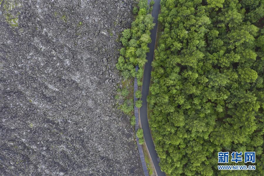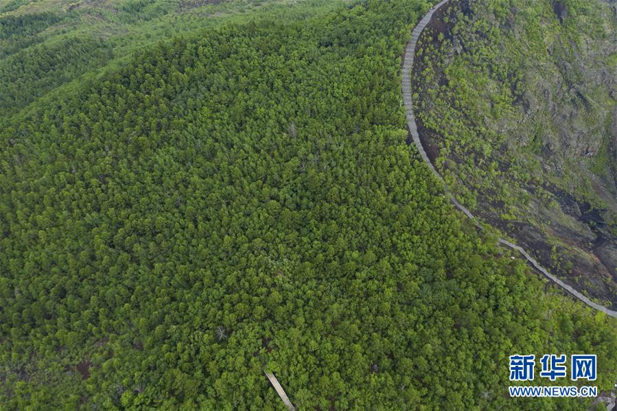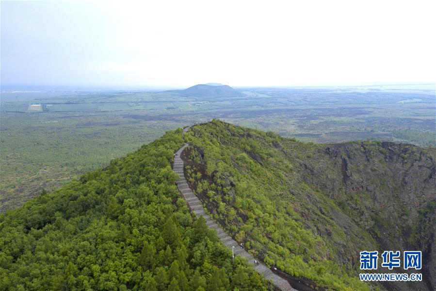 這是7月3日拍攝的五大連池風(fēng)景區(qū)(無人機(jī)照片)。 時下,五大連池風(fēng)景區(qū)內(nèi)植被蔥蘢,在火山、熔巖臺地、火山堰塞湖的映襯下,景色壯美。 五大連池風(fēng)景區(qū)位于黑龍江省黑河市,是較為典型和完整的近代火山噴發(fā)遺跡,被喻為“天然的火山博物館”。 新華社記者 謝劍飛 攝