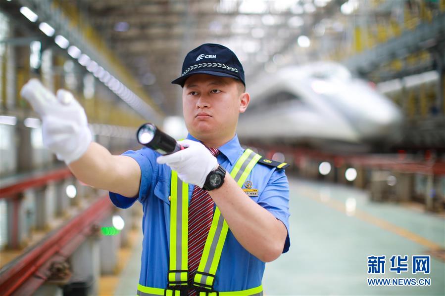 7月3日,擔任首發(fā)列車值乘工作的隨車機械師在貴陽亮相。 新華社記者 劉續(xù) 攝