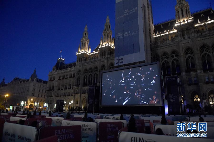7月4日,觀眾們在奧地利首都維也納市政廳廣場內(nèi)場一個個獨(dú)立小區(qū)域內(nèi)觀看維也納電影節(jié)開幕電影——貝多芬的歌劇《菲岱利奧》。新華社記者郭晨攝